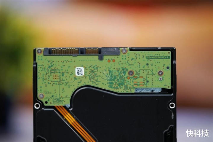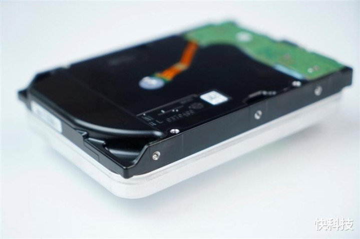 希捷银河Exos 32TB硬盘的背面特写,电路板非常小巧,而且所有的元件都在布置在另一侧,不直接外露更加安全。