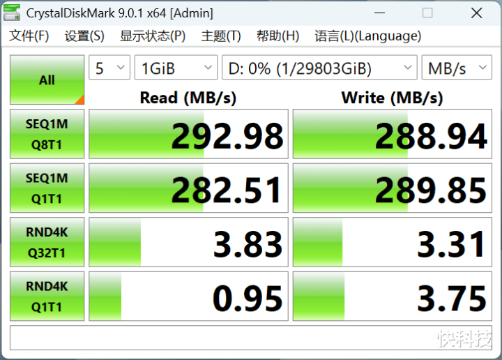三、性能测试:机械硬盘性能顶点 读写均可达到290MB/s
