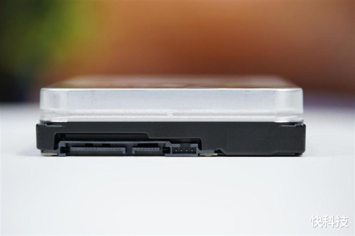 希捷银河Exos 32TB硬盘的接口特写,采用了桌面平台通用的SATA 3.0 6Gbps接口。